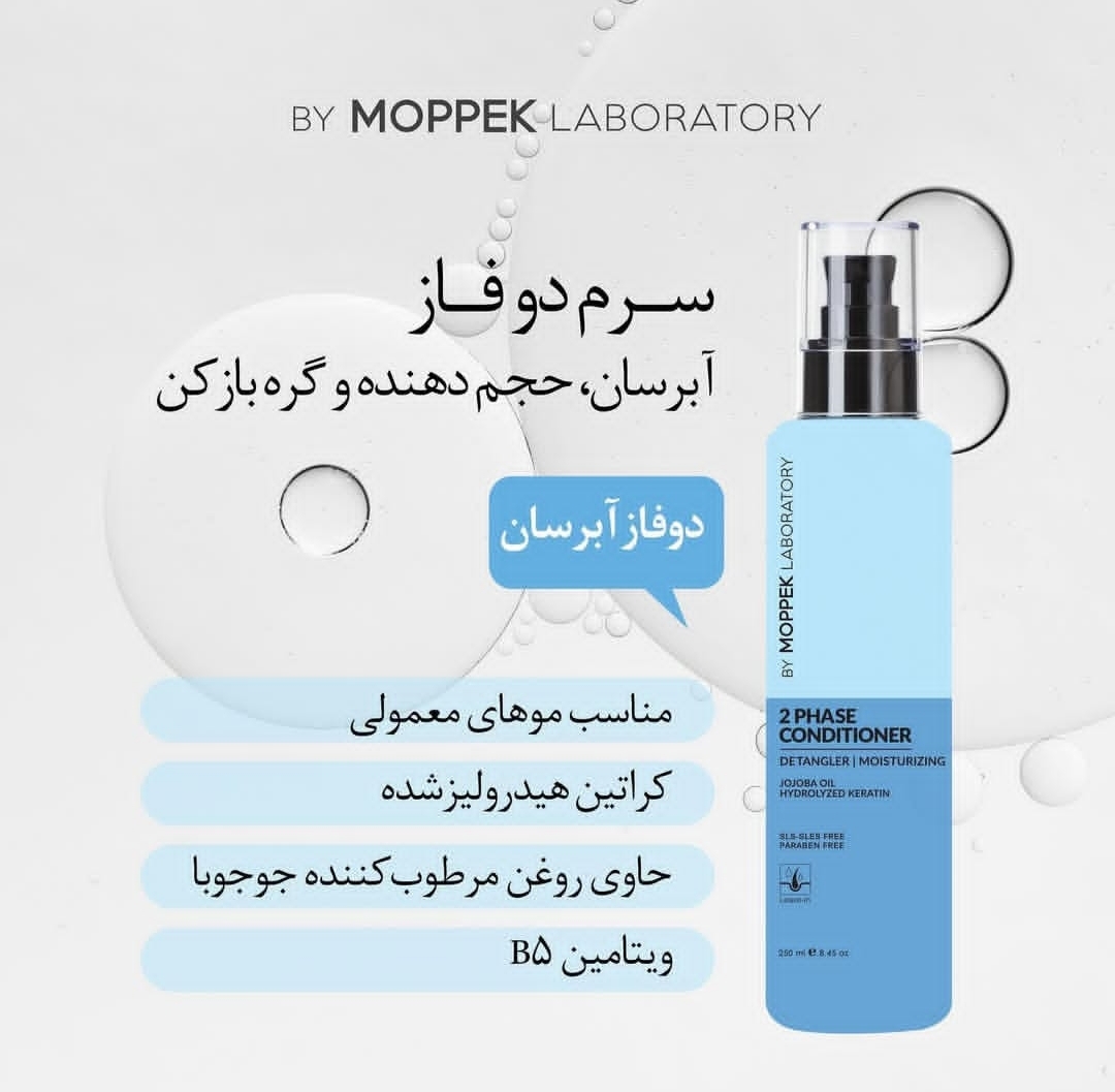 اسپری 2 فاز موپک برای استفاده قبل از براشینگ کردن مو است که از آسیبی که حرارت به موهای شما میزند جلوگیری کند.